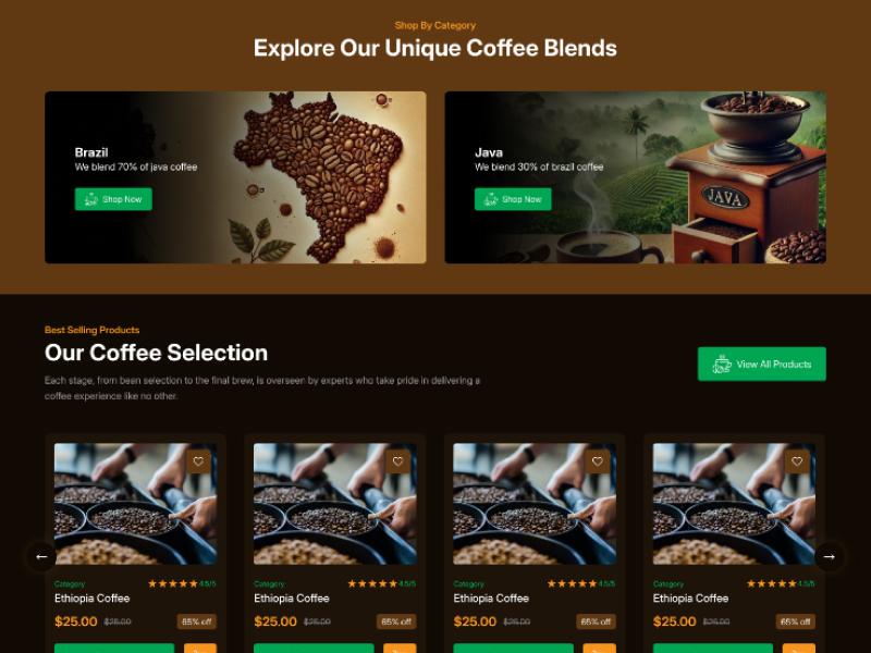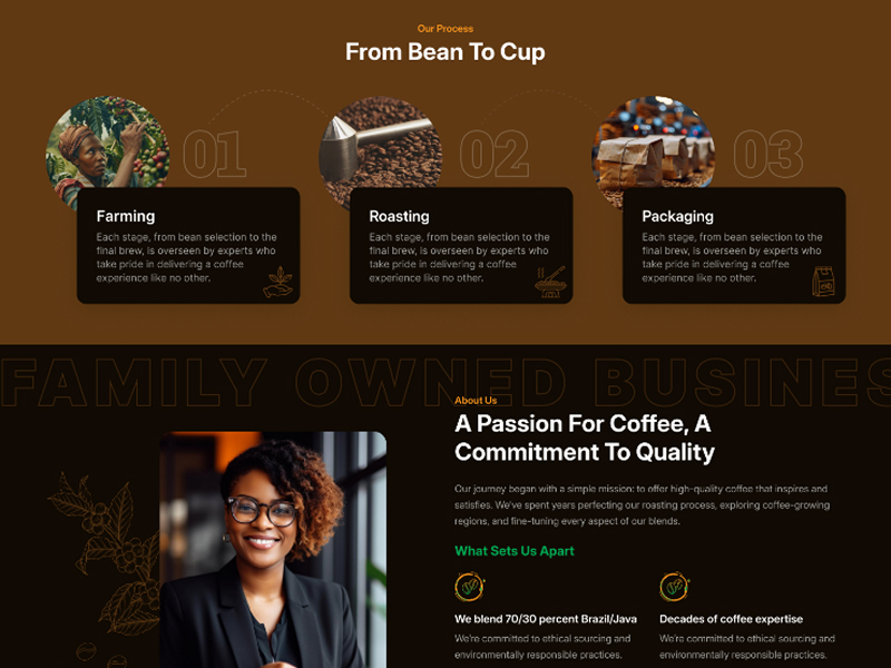Users visiting the previous website had no clear path to discover coffee products, explore brand values, or engage with the content.