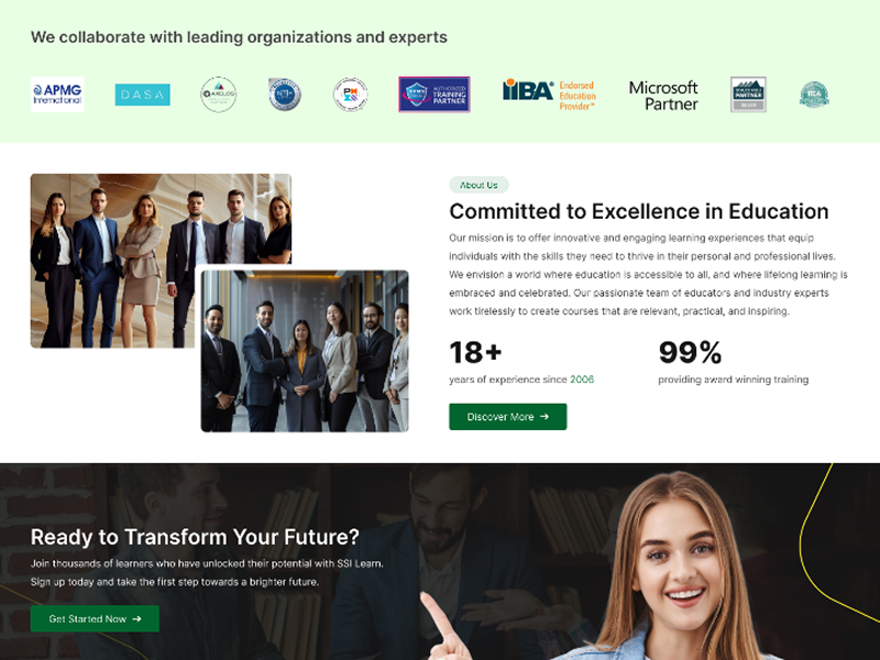 SSI (Skill & Success Institute) is an online learning platform offering expert-led professional courses. The objective was to design a structured, trustworthy, and conversion-focused educational website that helps users easily discover courses, build trust, and enroll seamlessly.